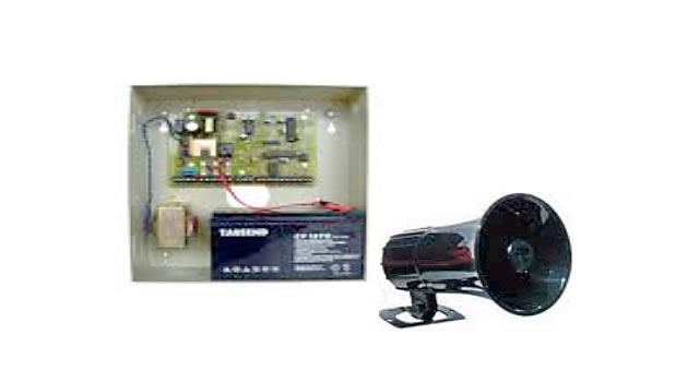 Sirena 12V 85db 30Watts, completa instalada batería 12V 2 AMP , trasformador 120-12 V fuente de poder 2 AMP, caja metálica con interruptor manual .