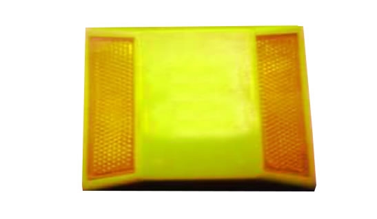 Guía reflectiva para camino, color amarillo plástico con refuerzo posterior de 10*10*2cm