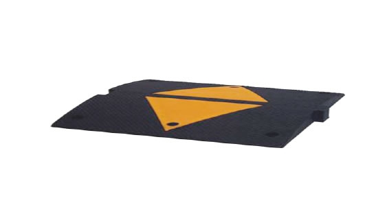 Reductor de velocidad de caucho reciclado de color negro y amarillo instalado 50cm. 6cm de alto.(*)